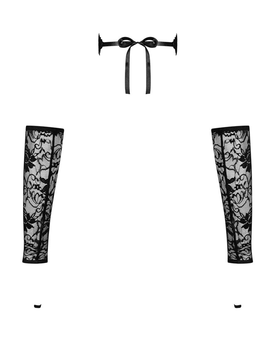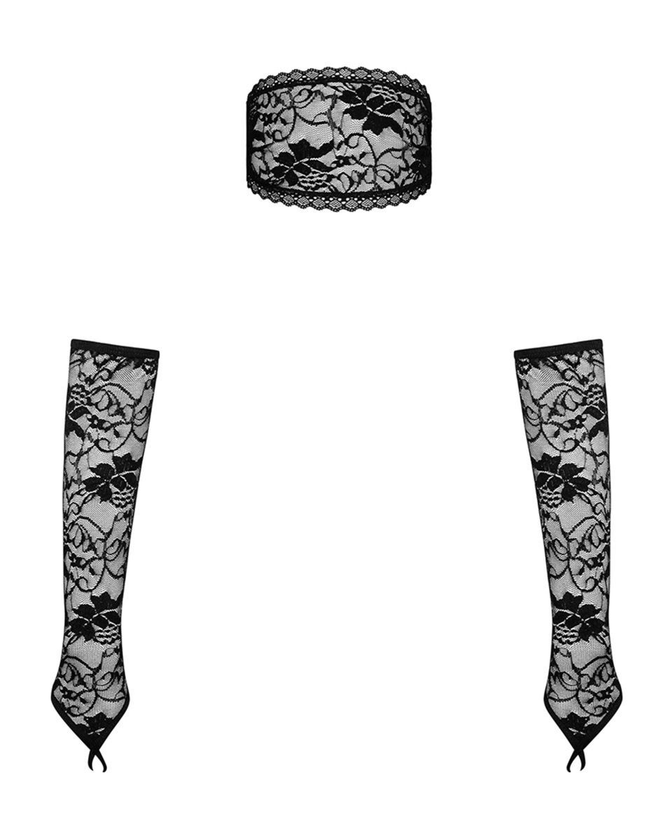 Комплект для эротических игр из коллекции Kokietta из гипюра с цветочным рисунком состоит из длинных митенок с петлей на палец и маски на глаза. В комплекте: маска и митенки.