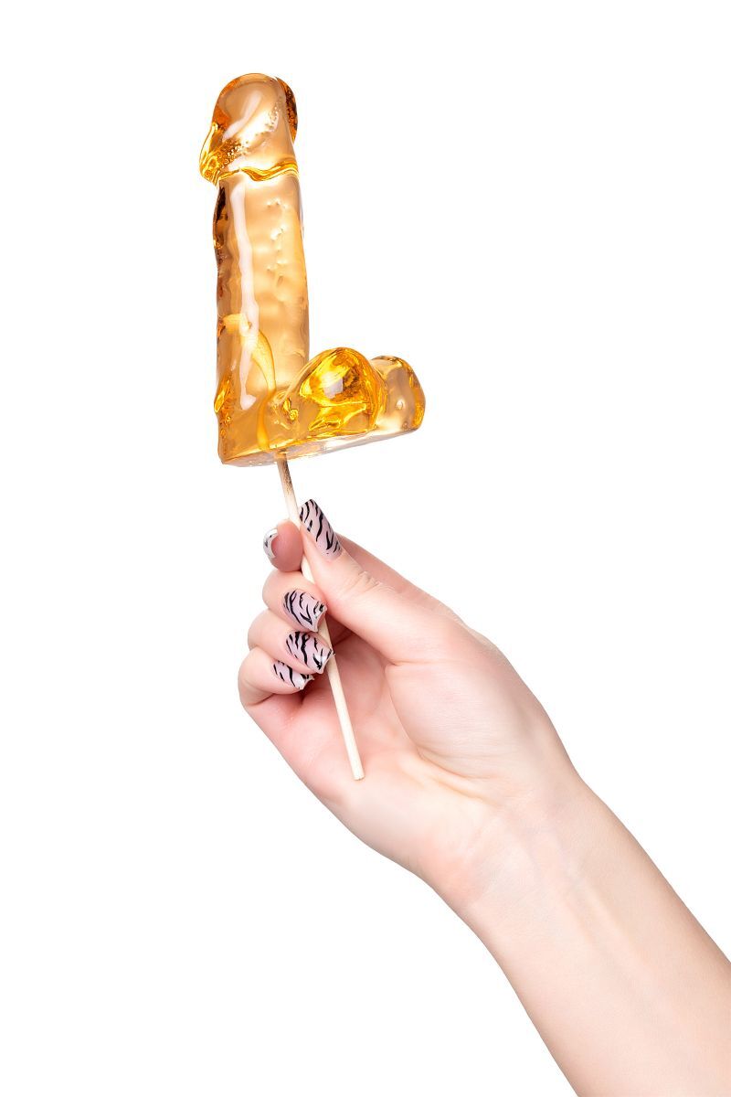 Оранжевый леденец в форме пениса со вкусом аморетто