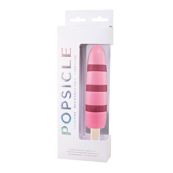 Оригинальный розовый вибромассажер-эскимо - 15,5 см.