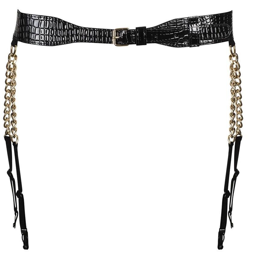 Вы ищете игривый аксессуар, который будет радовать вас каждой мелочью? Сочетание блестящего материала глубокого черного цвета, изящных цепочек и золотых застежек - гремучая смесь!