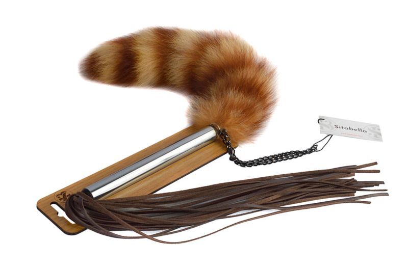Плеть-щекоталка с натуральным хвостиком и ударной частью из тонких 3 миллиметровых лент из натуральной кожи. Длина ударной части плети - 30 см., хвоста - 25 см. Длина рукояти - 15 см.