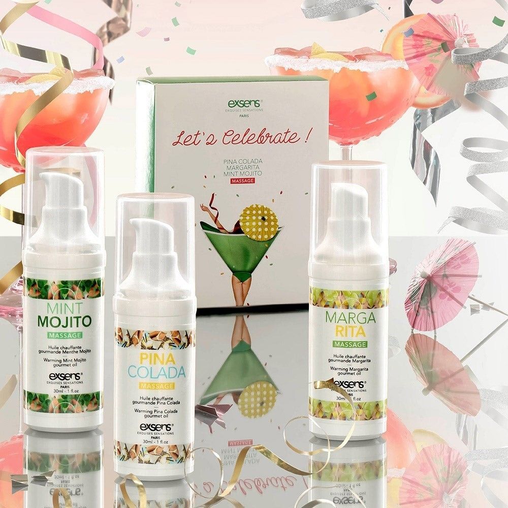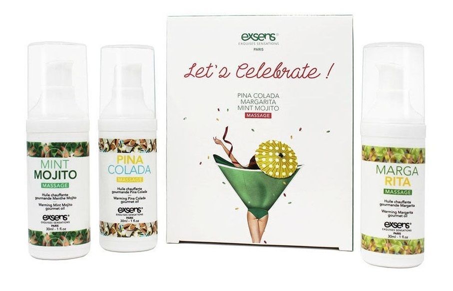 Побалуйте себя на ходу с помощью набора разогревающих массажных масел Lets Celebrate! Согревающие масла для интимного массажа, идеально подходящие для любого торжества в спальне! Набор включает в себя три самых продаваемых усилителя удовольствия - с ароматом мохито, маргариты и пина колада. Попробуйте их все! Эти согревающие массажные масла были созданы для интимной прелюдии и орального удовольствия. Испытайте желаемое согревающее ощущение при нанесении на интимные зоны.