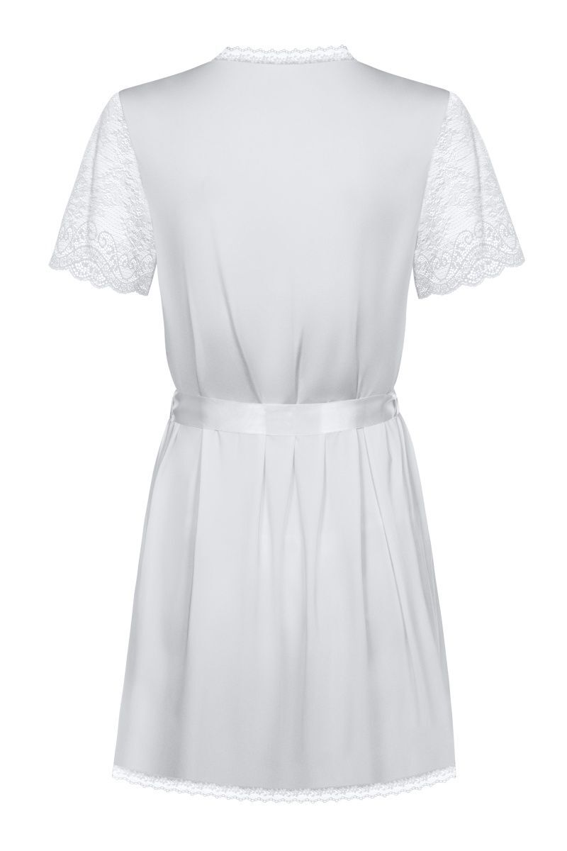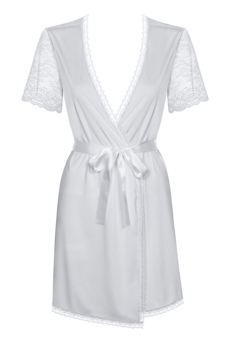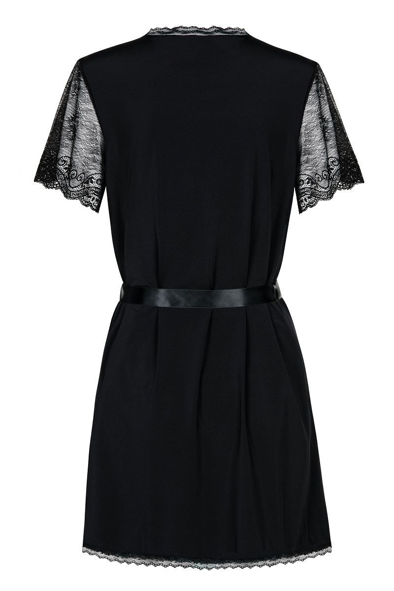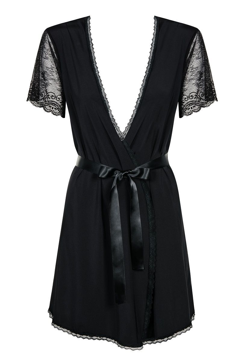 Вкусной конфетке нужна привлекательная обёртка. Этот пеньюар из стрейч-атласного материла и станет таковой: укроет ваше знойное тело от любопытных глаз и вызовет желание поскорее заключить вас в объятия. Небольшая длина, подчеркивающая красоту ног, строгий черный цвет, отсутствие воротничка, длинный пояс из атласной ленточки, кружевная оторочка, рукавчики из ажурного полотна – ням-ням! Трусики-стринги в комплекте. В комплекте: пеньюар, трусики-стринги.