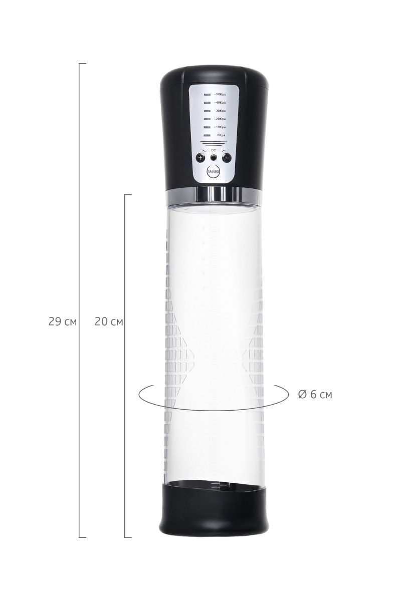 Автоматическая помпа на аккумуляторе Sigurd – для самых требовательных мужчин, которые стремятся к легендарной мужской силе. Сексуальное могущество для мужчины – не только крепкая и надежная эрекция, но и внушительный размер орудия. С автоматической помпой Sigurd серии Sexus Men Expert возможно достичь впечатляющих результатов в области увеличения размеров пениса, занимаясь пенбилдингом по эффективной программе тренировок. Для тренировки, а также чтобы подготовить себя к длительному и яркому сексу, вставьте свой пенис в колбу и откачайте воздух. С помпой Sigurd не нужно прилагать усилий для создания вакуума, она сделает это за вас комфортно и безопасно. Помпа имеет 5 уровней давления, которые регулируются кнопками +/ - на колбе с на LCD-индикаторами 10/20/30/40/50 Кпа. После сброса давления кнопкой Valves умное устройство само откачает воздух до заданного режима, остановится, и будет держать заданный уровень. Благодаря отрицательному давлению увеличивается приток крови к половому члену. Прозрачный ABS-пластик позволяет наблюдать как пенис набирает силу и увеличивается в размере. А измерительная шкала помогает отслеживать результаты прямо в процессе. Для достижения ощутимых результатов рекомендуются систематические занятия по программе эффективного тренинга, которая входит в комплект. Регулярное использование вакуумной помпы Sigurd от Sexus Men позволяет: последовательно увеличить длину и диаметр полового члена, делая его более внушительным и прокаченным сделать эрекцию более стабильной, крепкой и продолжительной повысить сексуальную выносливость и половое влечение поднять уверенность в своих возможностях и совершать новые сексуальные подвиги понизить вероятность образований аномальных фиброзных тканей. Помпа Sigurd комплектуется программой тренировок и USB-проводом для зарядки. Порядок работы помпы: -Включение: коротким нажатием на кнопку «+» помпа включается на нулевом уровне, загорается синий индикатор 0 Kpa -Повышение уровней: коротким нажатием на кнопку «+» последовательно повышайте уровни откачки воздуха. Шаг – 10 Kpa, красные индикаторы загораются рядом с отметками давления в помпе. Помпа останавливается на заданном уровне и поддерживает указанный индикатором уровень давления. Если вы сбросите давление кнопкой «VALVES», помпа автоматически откачает воздух до заданного уровня. -Понижение уровней: сбросьте давление кнопкой «VALVES», а затем коротким нажатием на кнопку «-» последовательно понижайте уровни давления в помпе. Шаг – 10 Kpa, красные индикаторы загораются рядом с отметками давления в помпе. Помпа останавливается на заданном уровне и поддерживает указанный индикатором уровень давления. -Сброс давления: кнопкой «VALVES» помпа сбрасывает давление в колбе. Если вы не понизили уровень, то помпа автоматически восстановит его до указанного красным индикатором. -Выключение: последовательно понижайте уровни кнопкой «-» до 0 Kpa, отмеченного синим индикатором. Через 5 секунд помпа отключится сама. Перед тем, как извлечь член из помпы, сбросьте давление кнопкой «VALVES». Длина колбы - 20 см