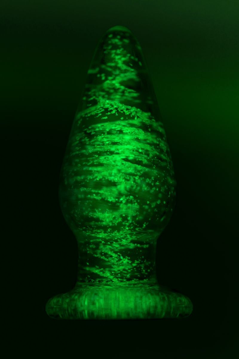 Прозрачная анальная втулка из закаленного стекла содержит флуоресцентные микрочастицы, которые светятся в темноте. Такой необычный дизайн помогает внести в интимные игры разнообразие. Достаточно зарядить игрушку под дневным или искусственным светом, чтобы насладиться ее мерцанием и свечением в темноте. Оптимальный размер, обтекаемая форма конуса и наличие ограничителя делают использование анальной игрушки безопасным.