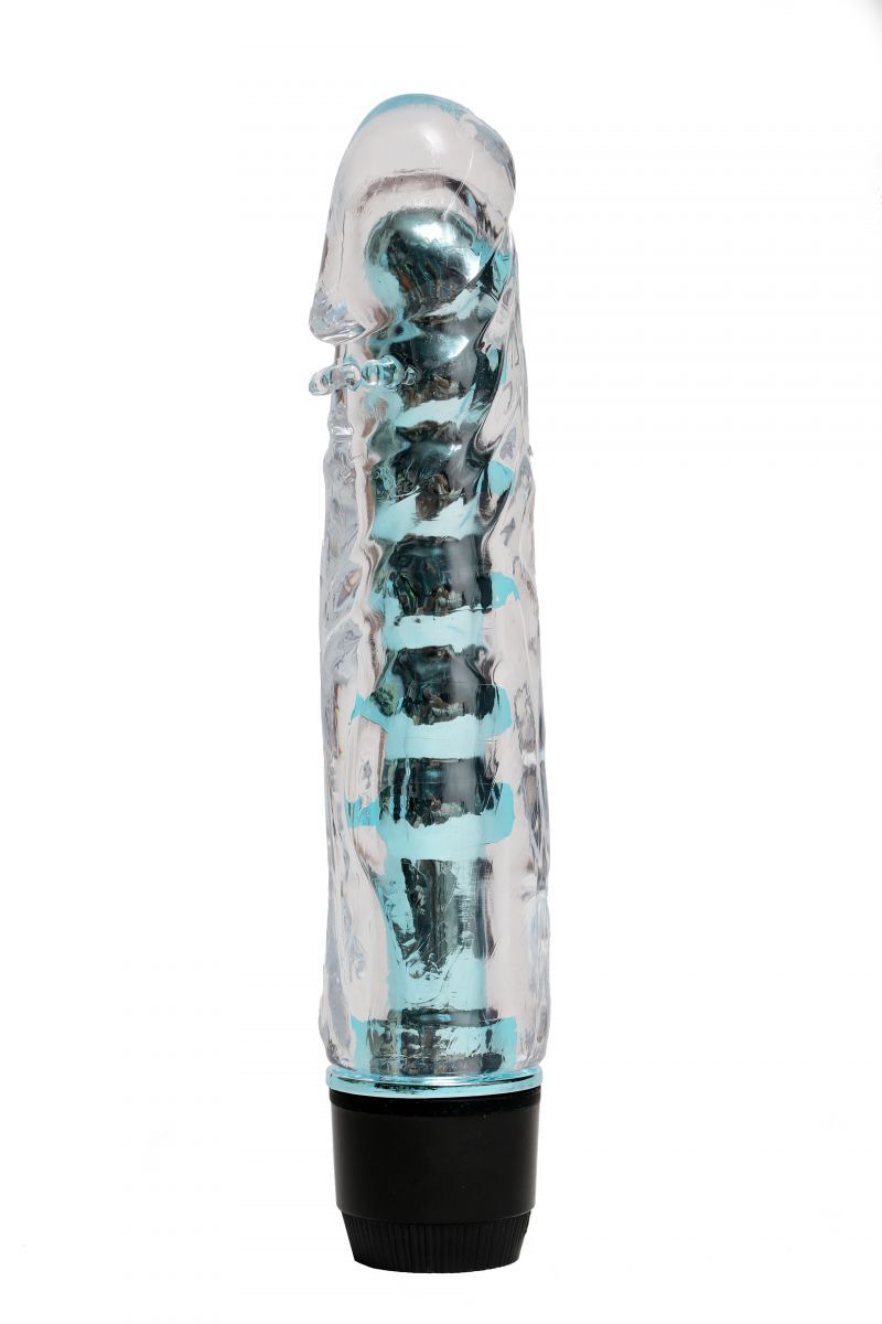 Необычный вибромассажёр имеет классическую форму. Необычайно приятный, прозрачный материал, вибратор оснащен дополнительными пупырышками под головкой для особенных ощущений. Степень вибрации регулируется при помощи кнопки, расположенной в основании.