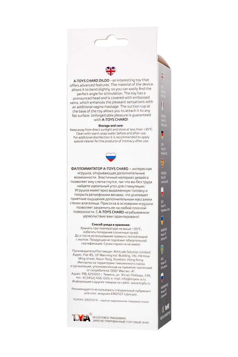Фаллоимитатор A-Toys Chard – интересная игрушка, открывающая дополнительные возможности. Эластичный материал девайса позволяет ему слегка гнутся, так что вы без труда найдете идеальный угол для стимуляции. Игрушка имеет ярко выраженную головку и покрыта рельефными венами, что усиливает приятные ощущения дополнительным массажем стенок влагалища. Присоска в основании игрушки позволяет закрепить ее на любой плоской поверхности. С A-Toys Chard незабываемое удовольствие вам гарантировано! Рабочая длина - 16,5 см.