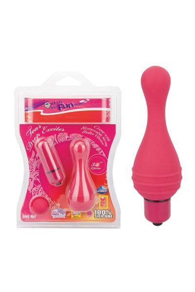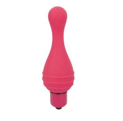 Розовая вибропуля с силиконовой насадкой. Может использоваться для массажа клитора, сосков, ануса и других эрогенных зон.