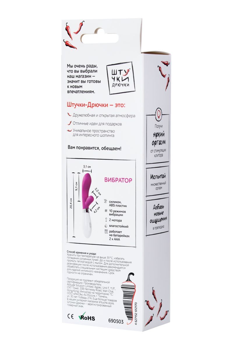 Изогнутая и чертовски мягкая головка, которая безошибочно находит хитрую точку G, и заставляет содрогаться от накатывающих волн наслаждения. Рельеф, увеличивающий уровень удовольствия от волнующей стимуляции в несколько раз. Нежный клиторальный отросток, который дарит самые волнующие ласки. Два мощных мотора и 10 режимов интенсивной вибрации, которые доводят до множественного оргазма даже айсберг в океане. Рабочая длина - 9,1 см.
