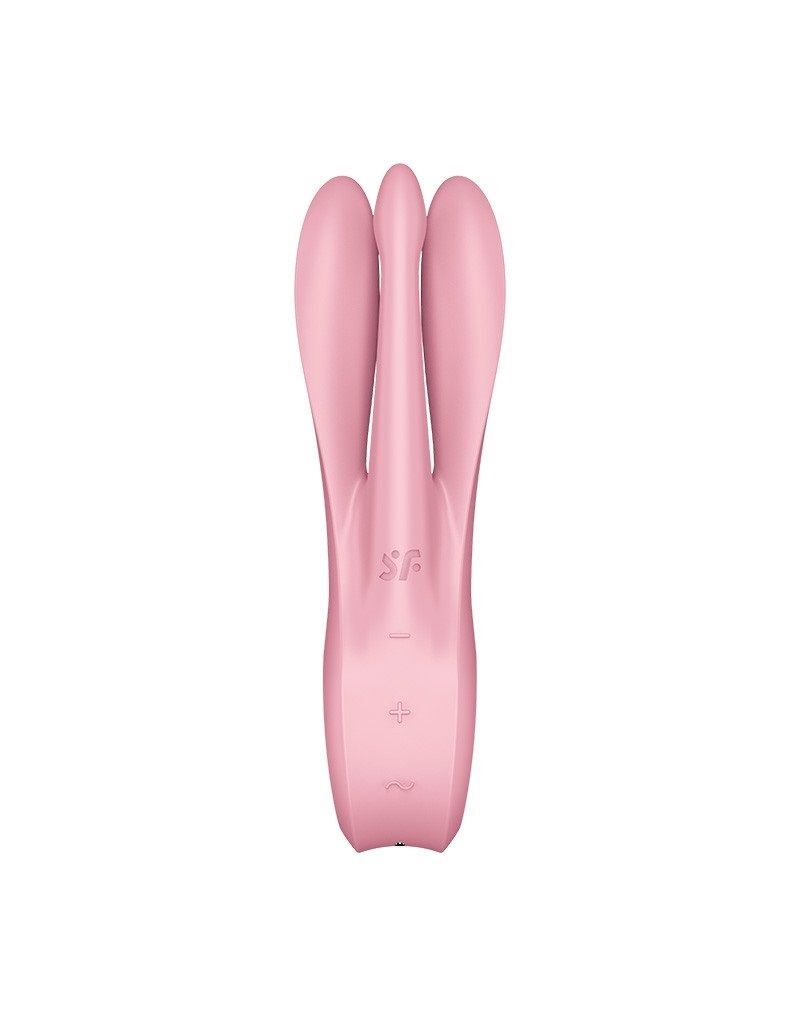 Необычный вибратор Threesome 1 от Satisfyer способен подарить особое удовольствие благодаря уникальной форме. Форма ствола вибратора имеет три гибких отростка-пальчика. Threesome 1 – это многофункциональный вибратор для стимуляции активных эрогенных зон. Вибратор отлично дополнит парные развлечения и соло-игру. Три гибких вибрирующих отростка отлично стимулируют клитор, вульву, пенис, соски и любые другие эрогенные зоны. Используйте необычную форму как проникающий вибратор или для внешней стимуляции. Каждый отросток оснащен мощным двигателем. 3 мощных мотора пробуждают волны наслаждения, передавая вибрационные ритмы по всей игрушке, стимулируя самые чувствительные области вашего тела и улучшая сексуальное здоровье. Два боковых отростка более объемные, третий отросток в центре – поменьше, имеет отдельное управление вибрацией. Игрушка имеет по 12 паттернов вибрации на боковых и среднем отростках, управляется легко и интуитивно кнопками на передней панели. Ручка с боковыми углублениями позволяет вибратору уверенно и комфортно лежать в руке в самых разнообразных позициях и при любой интенсивности движений. Плавные изгибы и аккуратный рельеф обеспечивают легкое проникновение. Шелковистое силиконовое покрытие — фирменный знак Satisfyer, тактильно нежный и приятный на ощупь, он быстро адаптируется к температуре вашего тела. Чтобы получить максимум удовольствия и сохранить материал в наилучшем виде, рекомендуется пользоваться качественной смазкой на водной основе. Время зарядки - 3 часа. Время работы - 1 час.