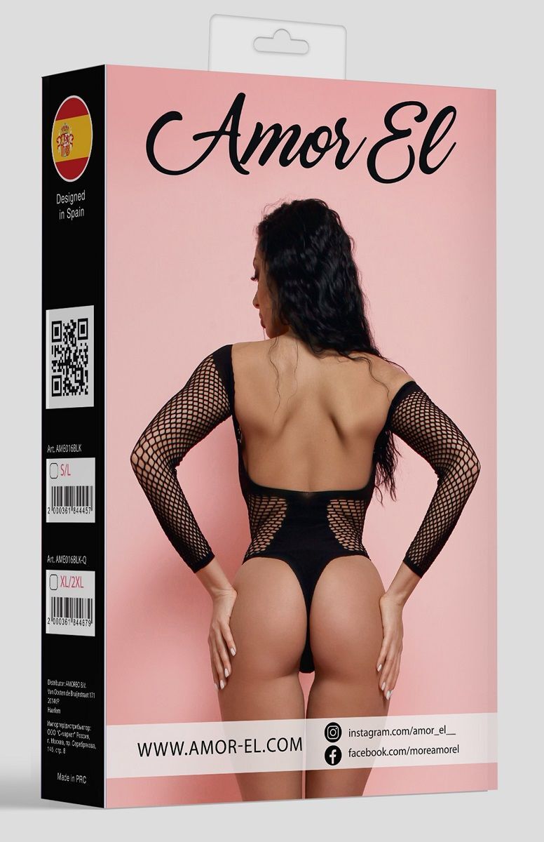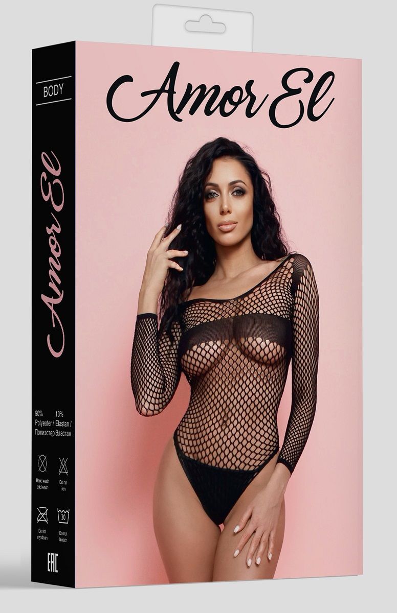 Сексуальное боди с рукавами. Дизайн выполнен в виде мелкой сетки с непрозрачной полосой прикрывающей соски. Благодаря использованию большего количества нейлона, белье сохраняет очертания, не деформируется, растягивается и выгодно облегает фигуру.