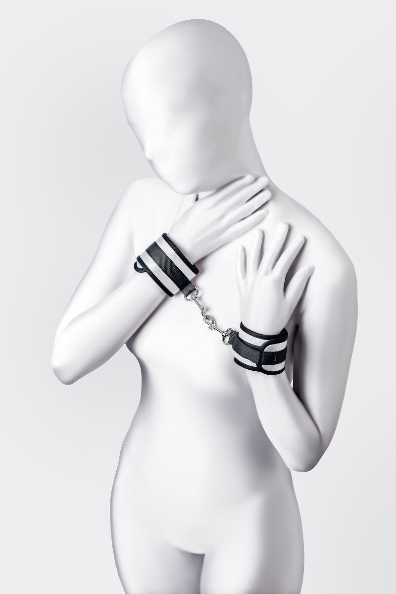 Наручники — классический предмет для игры в подчинение, обязательный для начинающих и опытных поклонников БДСМ. Блестящий во всех смыслах аксессуар для ограничения свободы: сатиновый материал поблескивает, когда на него падает свет. Необычное сочетание серебристого и черного, совсем нехарактерное для классического исполнения аксессуаров в стиле БДСМ, придает изюминку и новизну. Подчиненный с таким аксессуаром выглядит неотразимым. Застежка велкро позволяет зафиксировать руки любого размера. Между собой наручники скрепляются карабинами, практически не оставляя свободы действий. Никакого послабления, только полное подчинение своему Доминанту, где бы ни были зафиксированы руки: впереди или за спиной. Используйте дополнительно цепочку для расширенных возможностей фиксации положения рук. Начните игру в подчинение с этим аксессуаром, и вы поймете, как развивать свою чувственность с помощью ограничения свободы одного из партнеров. Ширина - 5,5 см. Длина сцепки - 8 см.
