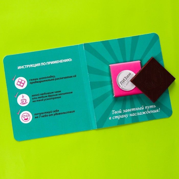 Шоколад молочный «Лизин» в открытке.