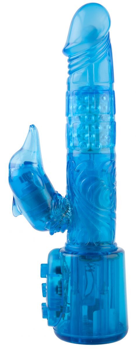 Вибратор с клиторальным стимулятором в форме дельфина , выполненный из материала ПВХ.