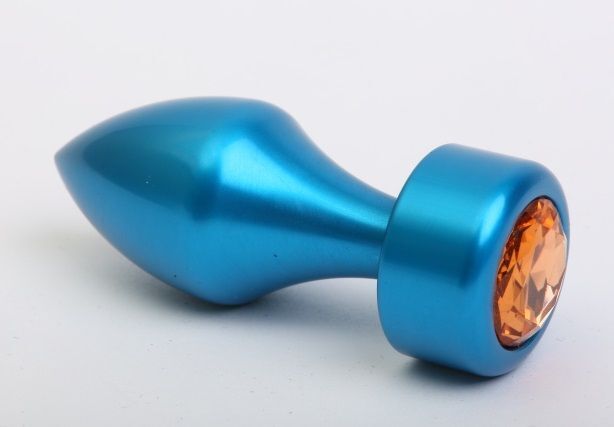 Синяя анальная пробка с жёлтым стразом - 7,8 см.