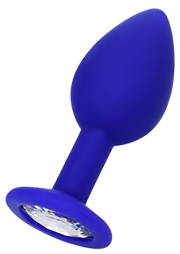 Синяя силиконовая анальная пробка Brilliant с прозрачным кристалллом - 7 см.
