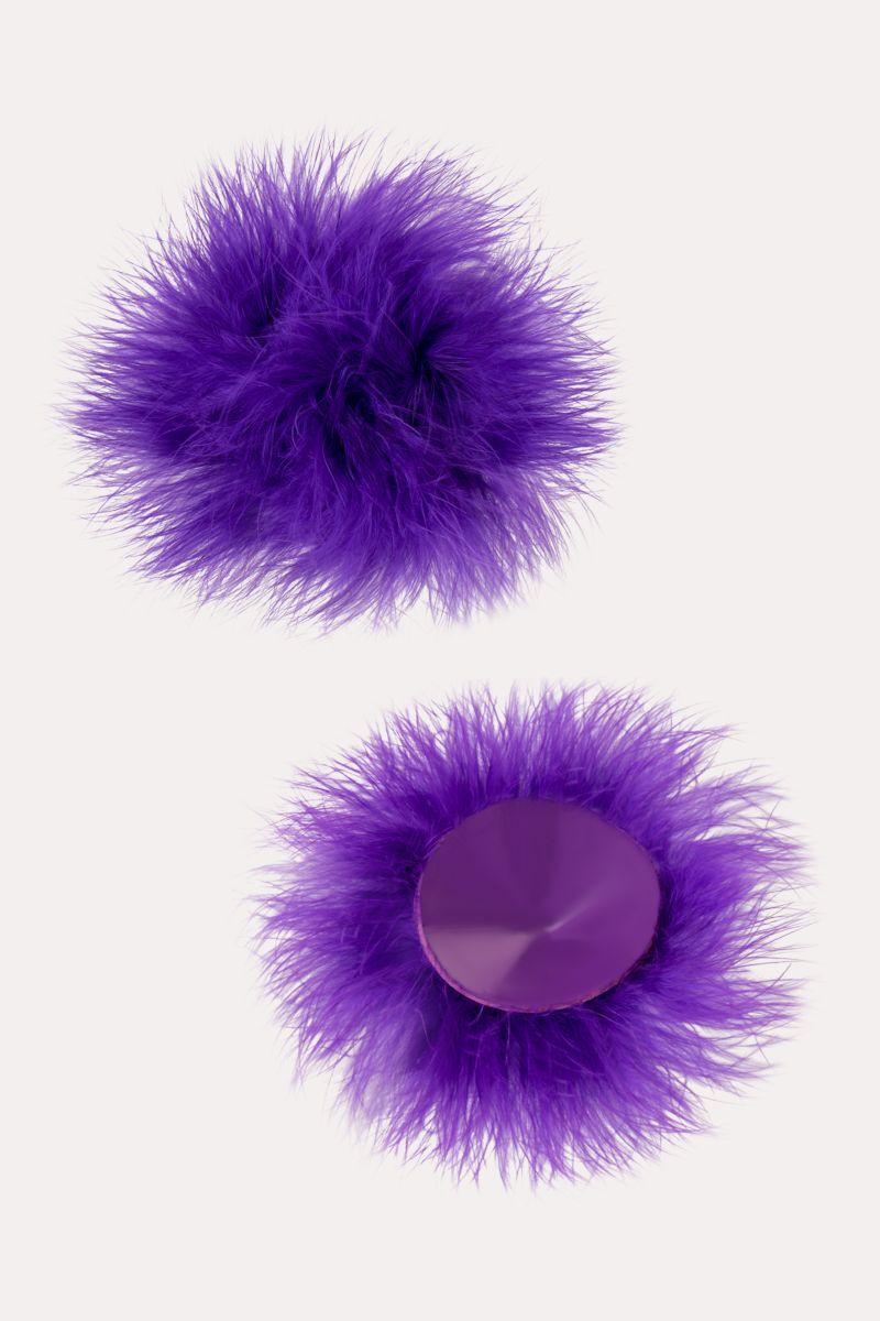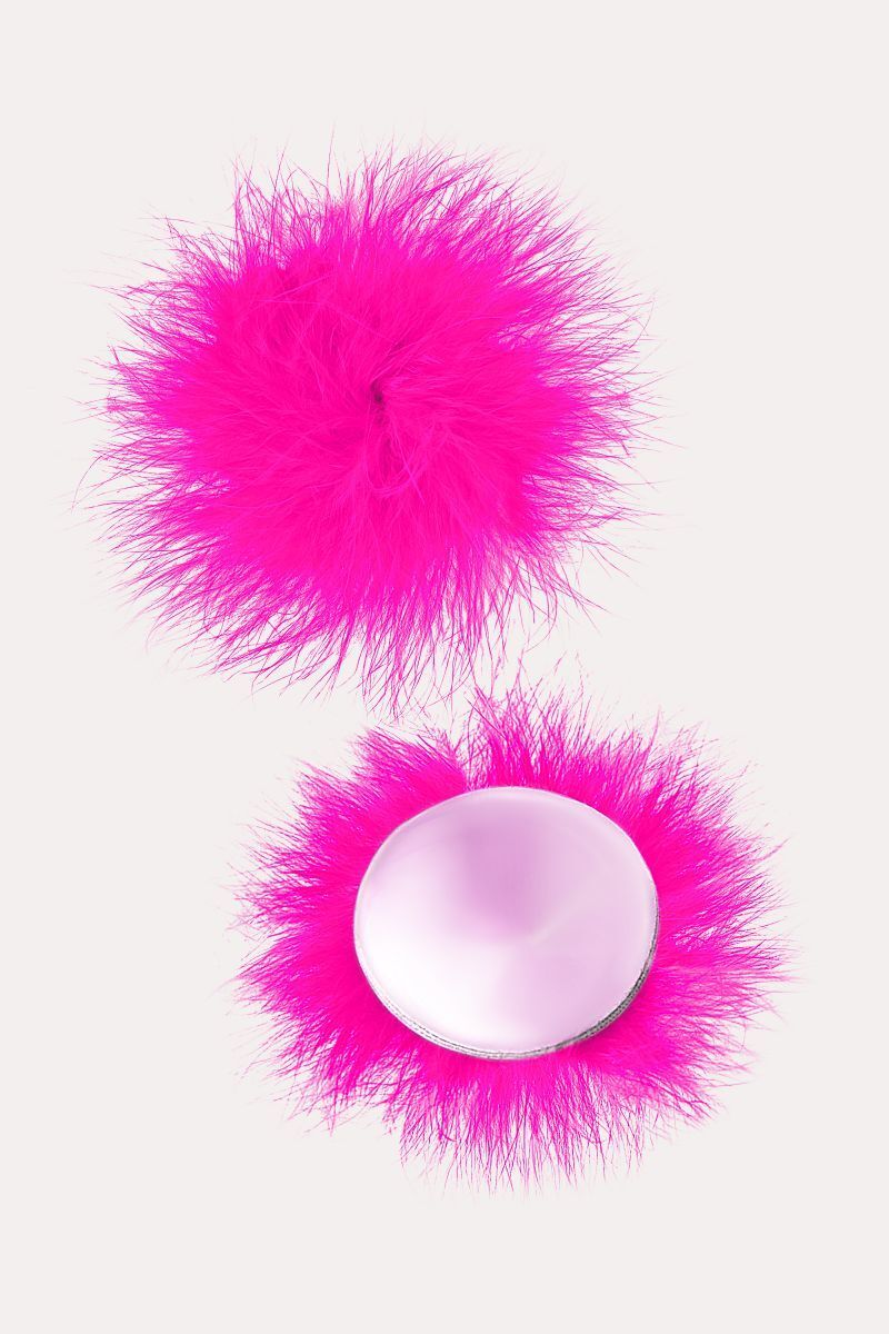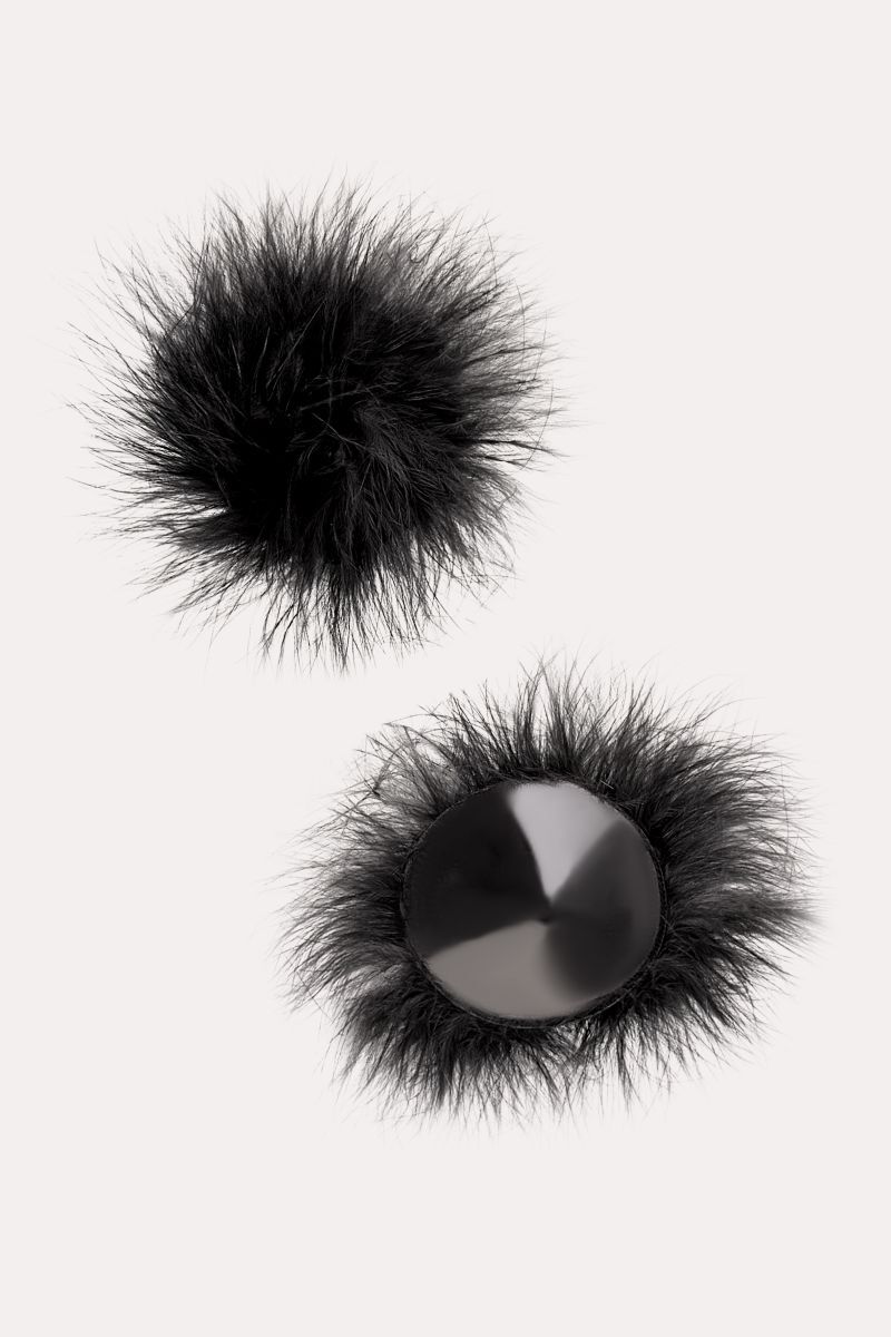 Наклейки на соски многоразовые. Однотонные. Основание выполнено из полиуретана, внутри — слой силиконового геля. Декор: искусственная кожа, пух. Размер основания - 5 см.