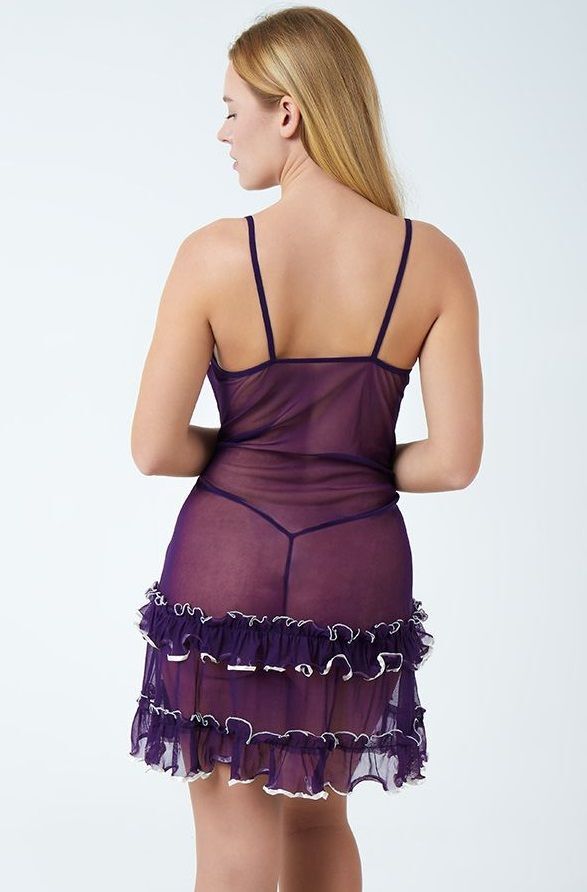 Прозрачная сорочка с ярким декором - вышивкой, лентами, пайетками. Тонкие бретели, по низу изделия рюши. В комплекте трусики-стринги. Белье обработано феромонами. В комплекте: сорочка, трусики-стринги.