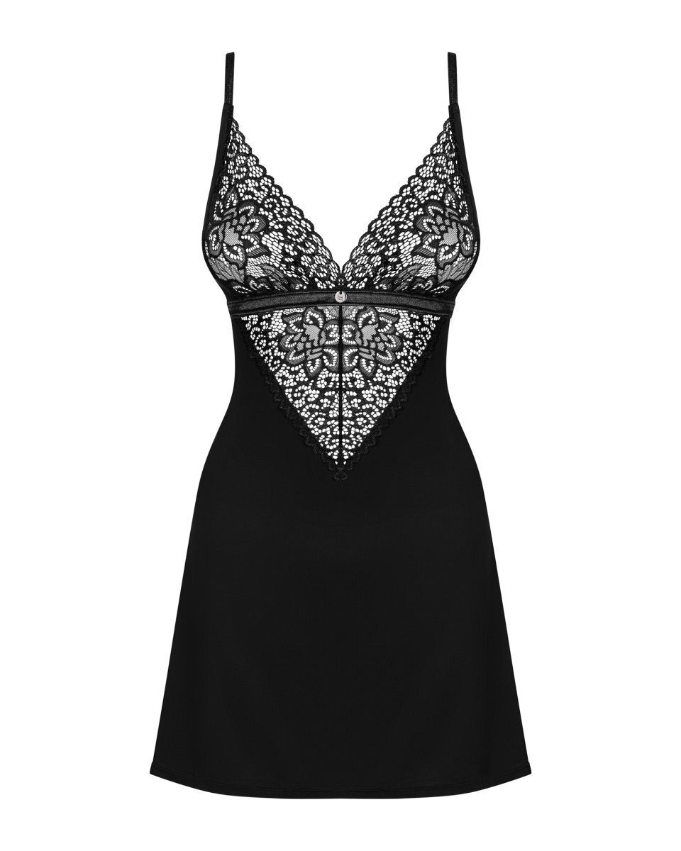 Сорочка из коллекции Cecilla скомбинирована из двух видов ткани. Лиф мягкий, из прозрачного кружевного полотна, без косточек, тонкие бретельки регулируются по длине. В комплекте: сорочка и трусики.