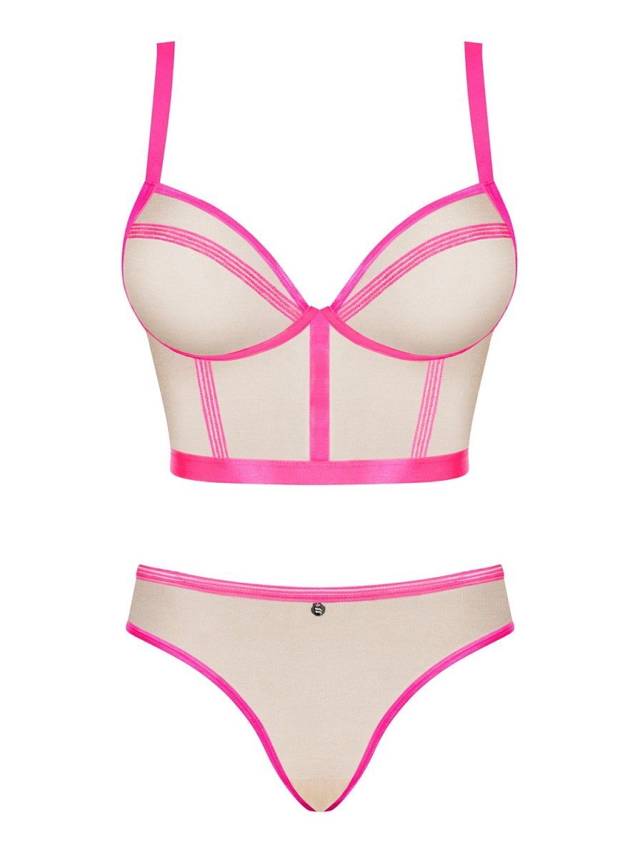 Комплект нижнего белья с мерцающей нитью. Полосы украшают тело - они визуально стройнят силуэт. В комплекте топ с мягкими чашками без косточек и трусики. В комплекте: топ, трусики.