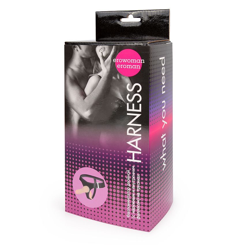 Страпон на трусиках Harness подарит невероятное удовольствие обоим партнерам! Как наружный, так и внутренний пенисы имеют четко очерченные головки, пульсирующие венки и естественный оттенок поверхности, что придает им максимальную реалистичность. Возможность регулировки размера трусиков позволяет использовать их, в том числе, и дамам с пышными формами. Длина вагинальной пробки - 10,5 см., диаметр - 3,5 см.