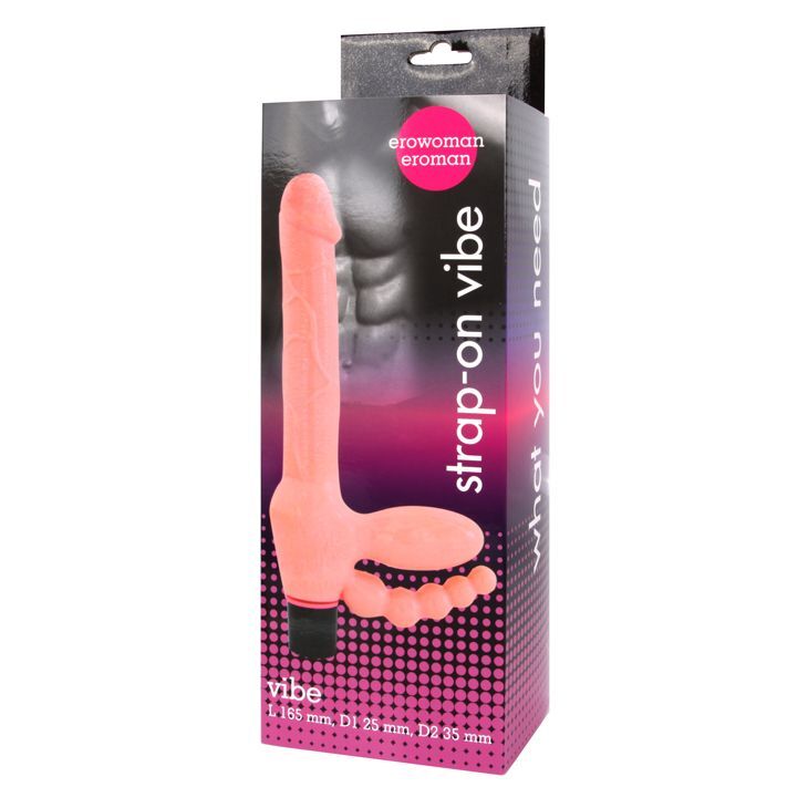 Анатомический страпон с вибрацией, без ремней – шикарная секс-игрушка для любителей ярких эмоций! Реалистичный пенис с четко очерченной головкой и текстурными венками – источник невероятного удовольствия для одного из партнеров, а вагинальная пробка и анальная цепочка – для другого участника любовных игр. Добавит приятных ощущений режим вибрация. Оригинальная конструкция страпона позволяет использовать его без дополнительных креплений. Изделие легко вводиться и извлекается. Комфортно в использовании. Не требует дополнительного ухода. Длина отростка - 16,5 см., диаметр - 3,5 см. Длина вагинальной пробки - 7,5 см., диаметр - 2,5 см. Длина анальной цепочки - 9 см., диаметр - 2 см.