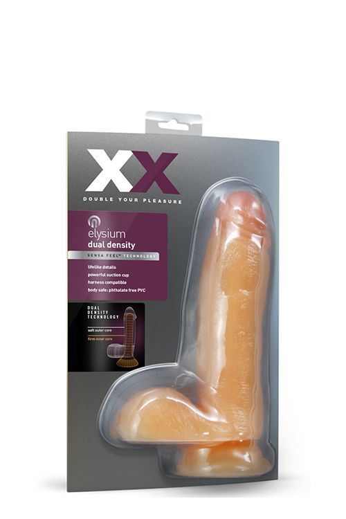 Телесный фаллоимитатор с присоской Elysium. Пышная мошонка, упругий ствол.