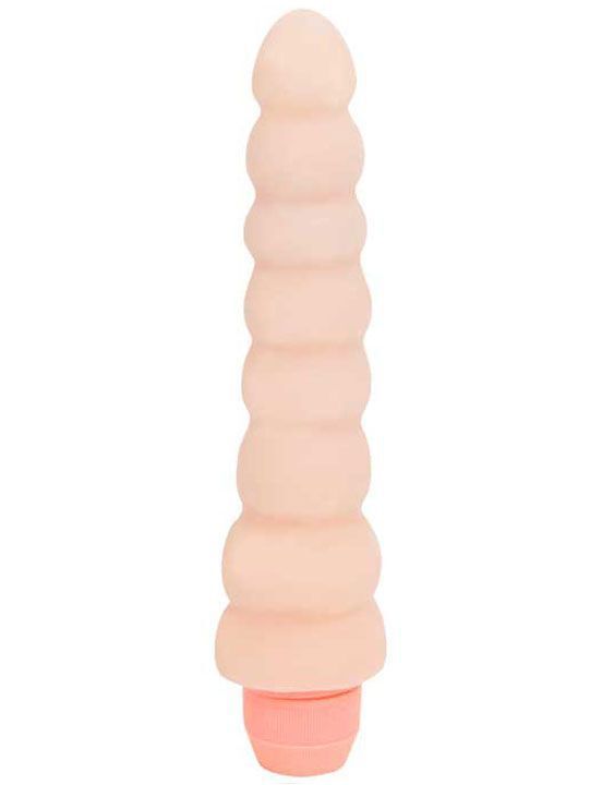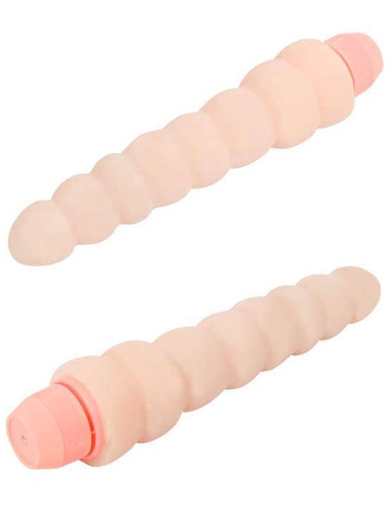 Вибратор ребристой формы, гнущийся. Изготовлен из суперсовременного материала «ультраскин», который с предельной точностью имитирует человеческую кожу, принимает температуру человеческого тела. Обладает неповторимой гибкостью и приятной структурой поверхности. Принимает любые формы, которые подарят дополнительное наслаждение от секса. Ребристая поверхность придаст особую пикантность ощущениям.
