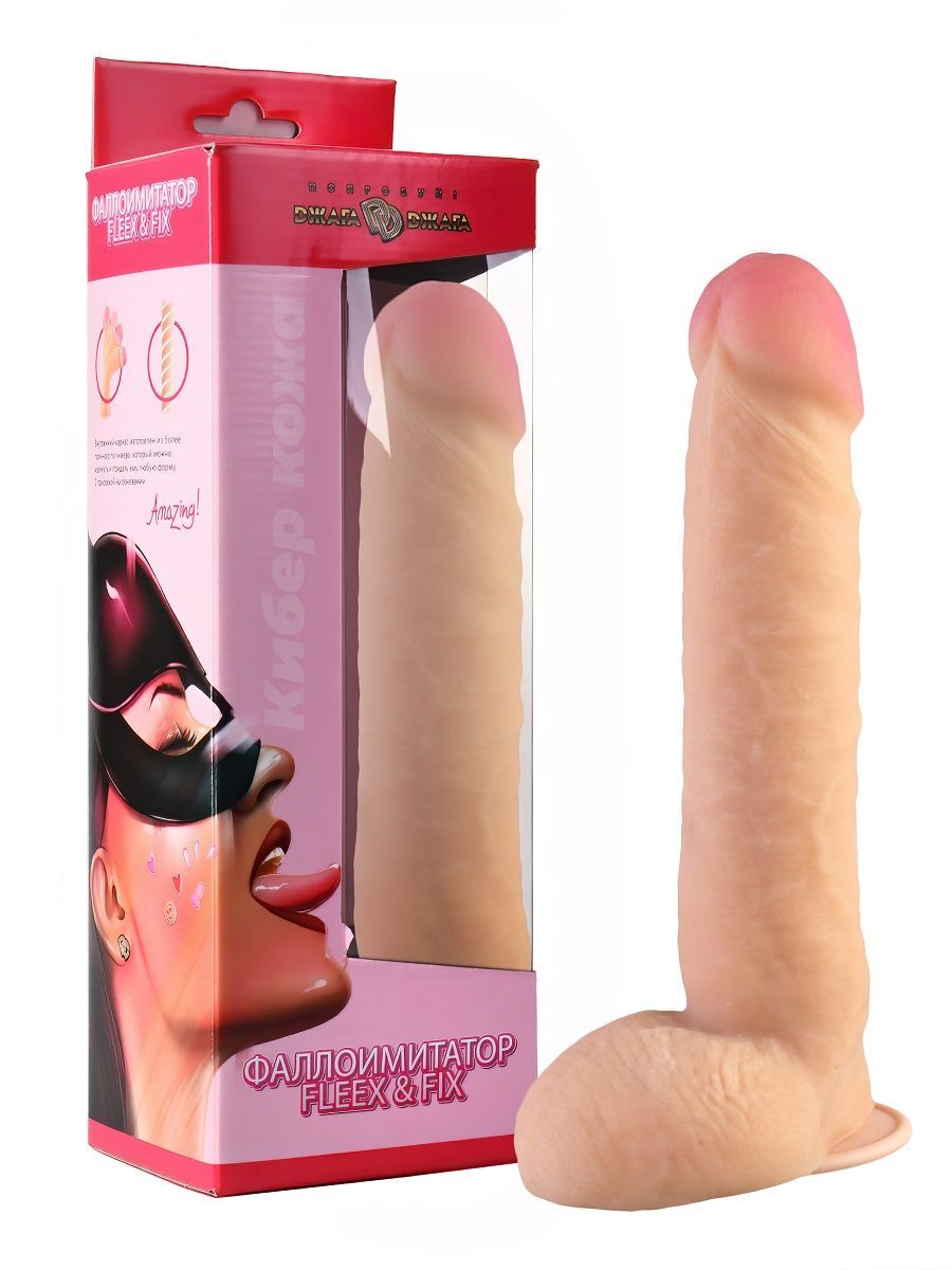 Фаллоимитатор серии Flex Fix Sistem имеет многослойную структуру. Наружная оболочка сделана из мягкого сверхреалистичного бархатистого материала киберкожа - невероятно приятного на ощупь. Внутренний каркас изготовлен из более прочного полимера, который можно изогнуть и придать ему любую форму. С присоской на основании. Фаллоимитатор достаточно крупного размера с выраженными венками и крупной, прорисованной головкой и выраженной мошонкой способен вскружить голову его обладателю. Великолепный фаллоимитатор с объемной головкой обеспечит максимальное наслаждение во время любовных забав. Рабочая длина - 21 см.