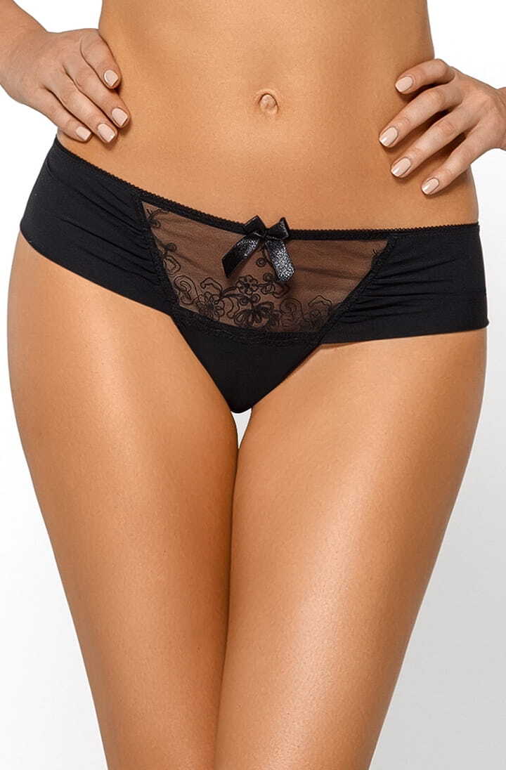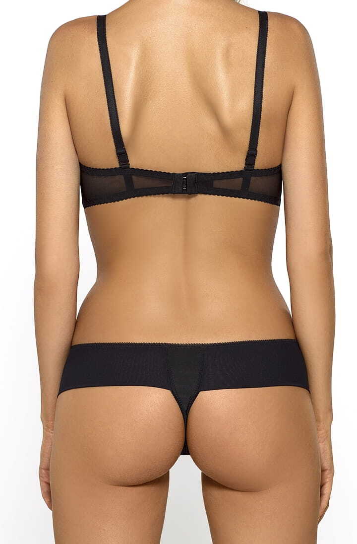 Трусики-стринги Olga с широким бочком, из эластичной ткани и нежной сетки, сложенной вдвое, спереди вставка из сетки с вышивкой. Ластовица из 100% хлопка.