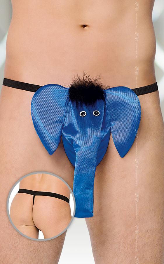 Ваша любимая не откажется пойти с вами на грандиозное шоу с дрессированным слоном. Как минимум потому, что проходить оно будет не в цирке, а спальне. Милый слон с глазами-пуговками и поднятым вверх хоботом – это так мило и…возбуждающе. Именно поэтому взволнованная зрительница, вместо аплодисментов, начнёт сбрасывать с себя одежду. Мужские трусы-стринги со слоном - это невероятно сексуальный образ, который уже стал классикой. Милый слоник с симпатичным хохолком заводит и располагает с эротическим играм. Сзади трусики соблазнительно обнажают упругие, как крепкие орешки, мужские ягодицы.
