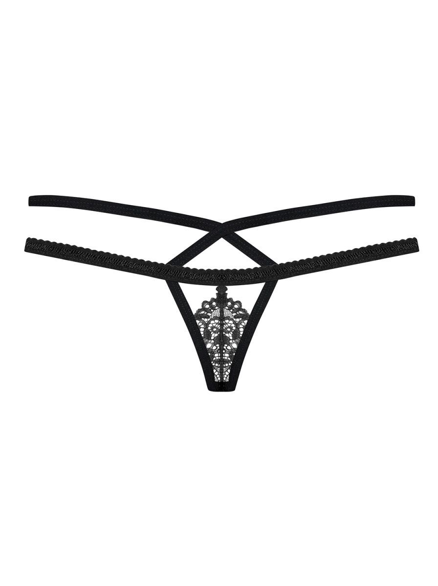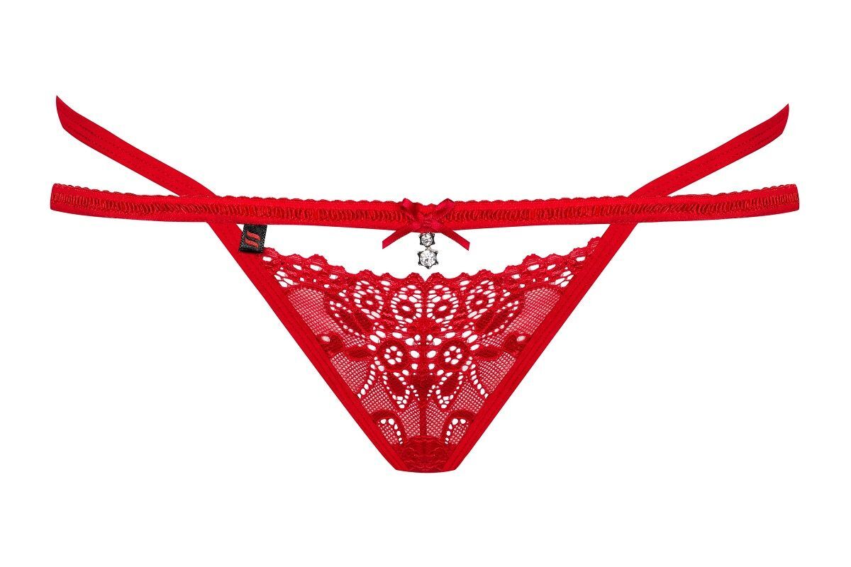 Яркие трусики-стринги с окошком и двойными бретелями.