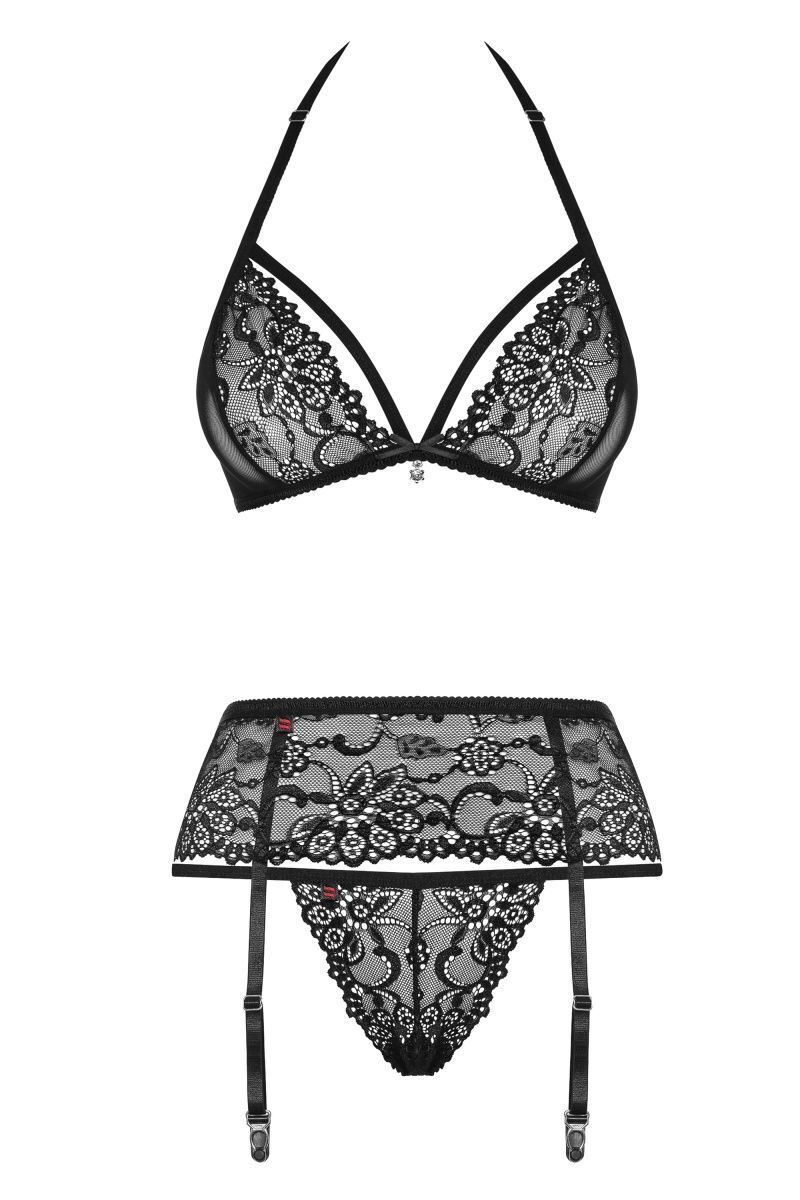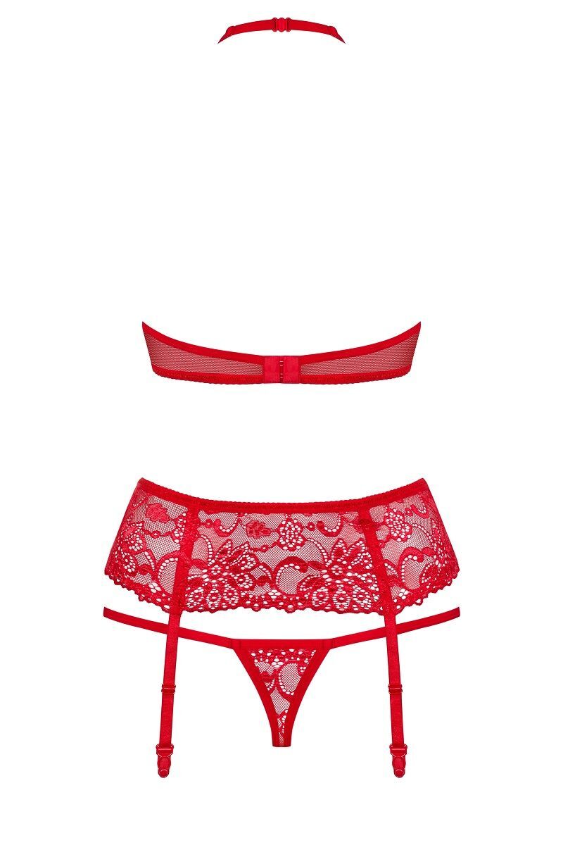 Яркий комплект из цветочного ажура. Подчеркивает все достоинства фигуры. Романтичный и сексуальный. В комплекте: лиф, трусики-стринги, пояс.