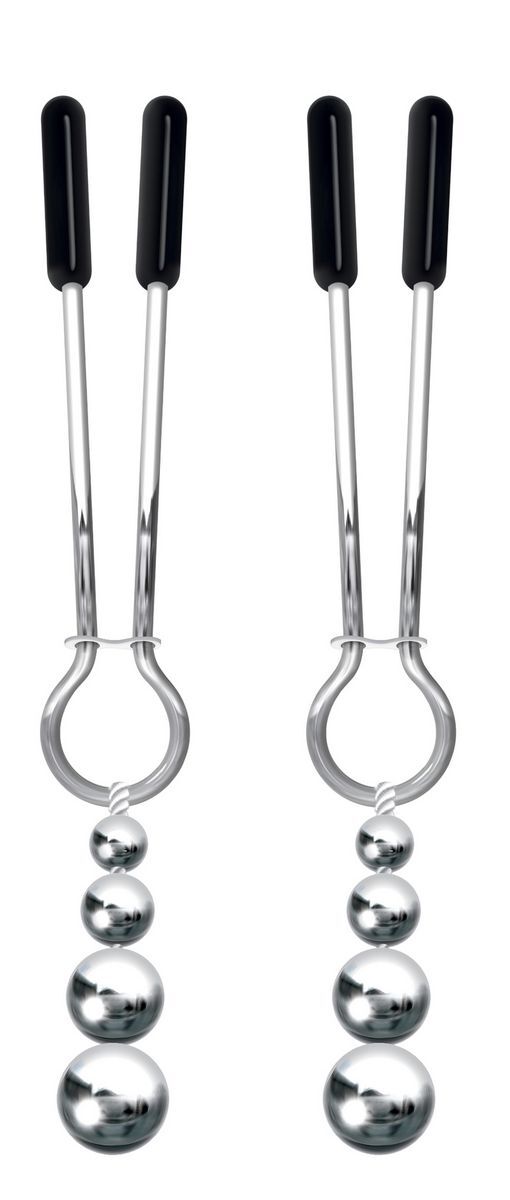 Проверьте свой порог удовольствия с помощью этих зажимов для сосков! Наденьте мягкие резиновые наконечники на сосок, затем медленно затяните, сдвинув регулируемый зажим вверх. Придерживайтесь легкого пощипывания или двигайтесь дальше для более интенсивной стимуляции. Набор металлических бусин провокационно свисает с каждого соска, обеспечивая дополнительный стимулирующий эффект и визуальное удовольствие.
