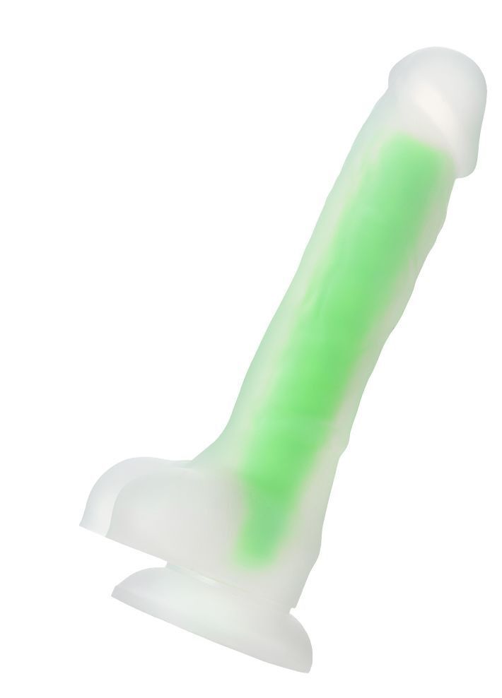 Зеленый, светящийся в темноте фаллоимитатор - 18,5 см.