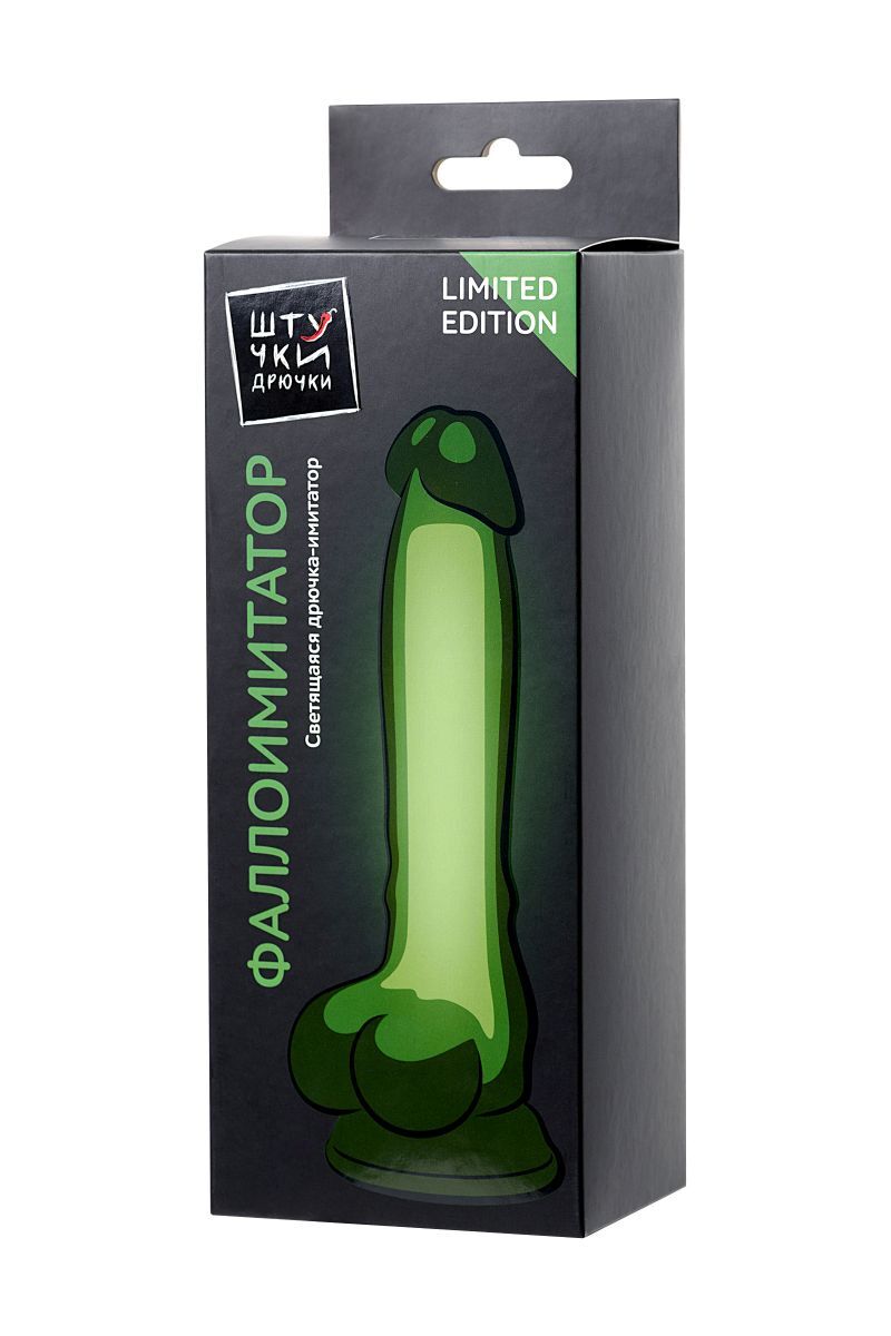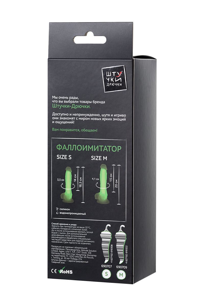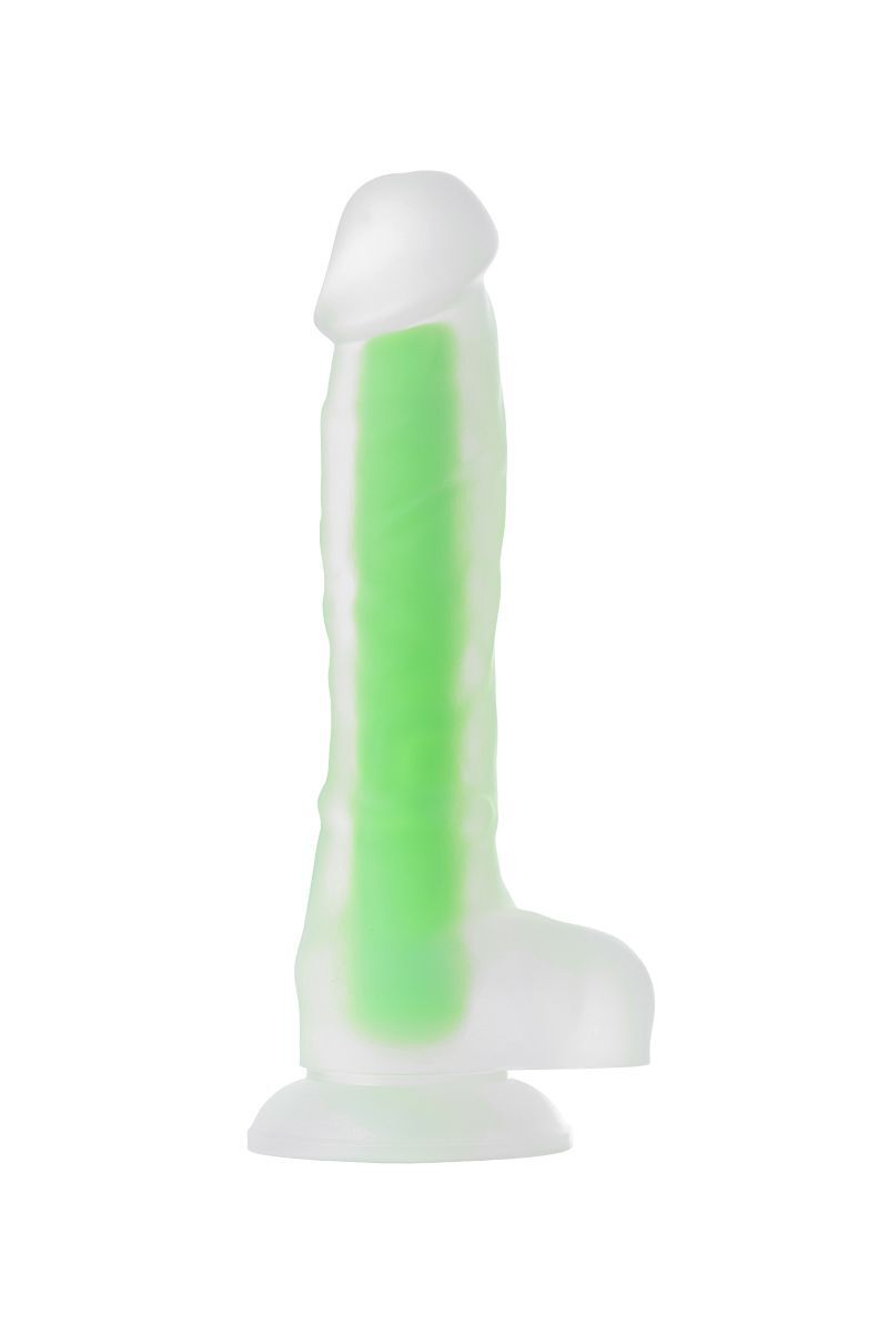 Фаллоимитатор, светящийся в темноте. Водонепроницаем. На присоске. Рабочая длина - 14 см.