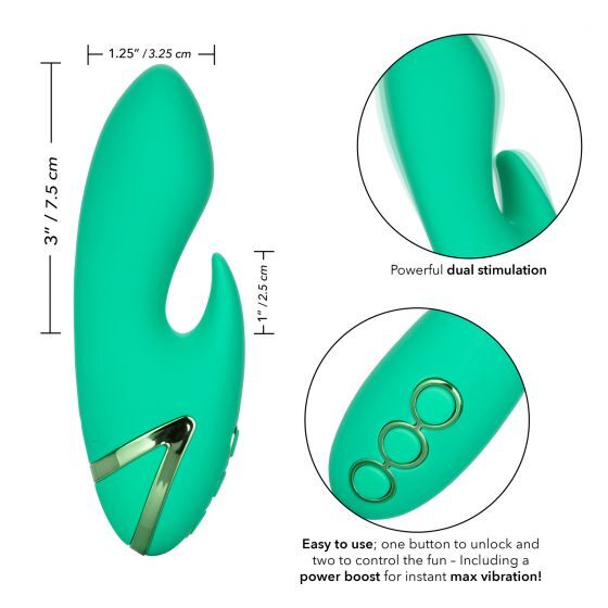 California Dreaming Sierra Sensation – перезаряжаемый мультискоростной вибратор-кролик из бесшовного материала с дополнительной обработкой. Эта модель имеет компактный размер и функцию Power Boost, обеспечивающую мгновенный переход к супермощной вибрации. Мощный мотор обеспечивает 10 функций равномерной интенсивной вибрации, пульсации и эскалации. Вибромассажер изготовлен из гипоаллергенного мягкого силикона премиум-класса безопасного для тела, не содержащего фталатов, обеспечивающего приятные и гарантированно безопасные тактильные ощущения. Подходит как для внешней, так и для внутренней стимуляции. За счет компактности легко помещается в сумочку. Управление осуществляется с помощью трех встроенных в основание кнопок. Чтобы включить или выключить игрушку, необходимо нажать и в течение трех секунд удерживать верхнюю кнопку питания. Имеется функция запоминания последнего выбранного режима. Доступна возможность блокировки, которая позволит предотвратить самопроизвольное включение игрушки во время путешествий. Вибромассажер заряжается через USB и может быть подключен практически в любом месте, просто подсоедините идущий в комплекте шнур к совместимому порту компьютера или USB-адаптера (приобретается отдельно), а противоположный конец к разъему у основания. Полная зарядка занимает 3,5 часа, ее достаточно для беспрерывной работы в течение 1,5 часов. Рабочая длина - 7,5 см.