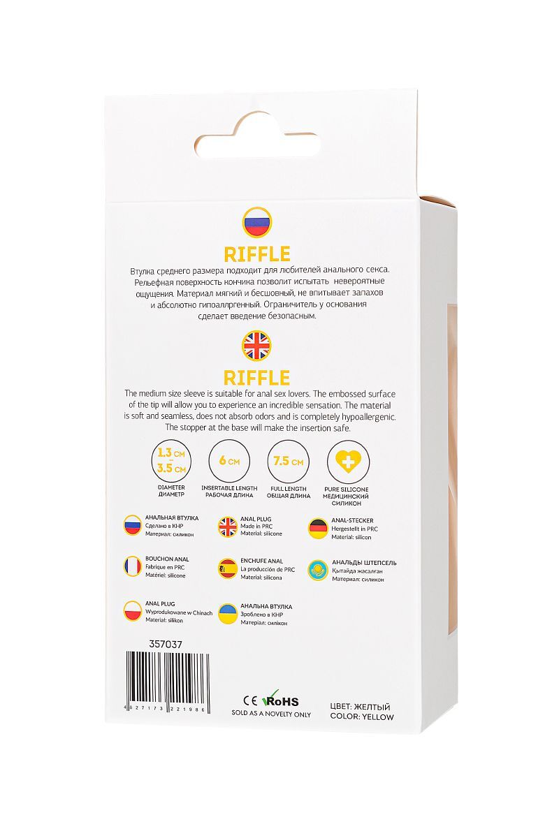 Яркая втулка маленького размера идеально подойдет для первого опыта. Рельефная поверхность кончика позволит испытать невероятные ощущения. Материал мягкий и бесшовный, не впитывает запахов и абсолютно гипоаллергенный. Ограничитель у основания сделает введение безопасным. Рабочая длина - 6 см.