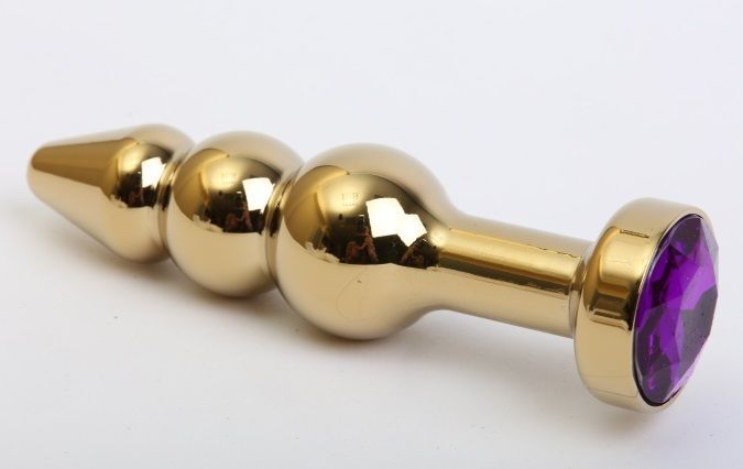 Золотистая анальная ёлочка с фиолетовым кристаллом - 11,2 см.