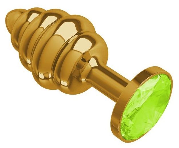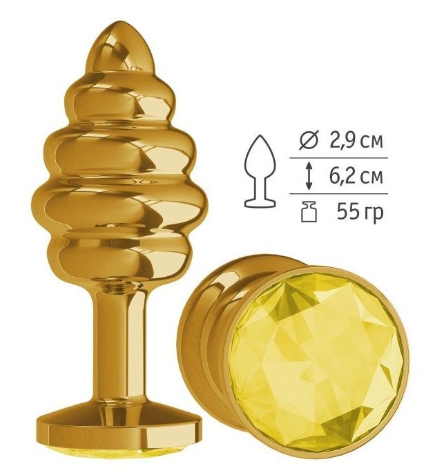 Золотистая спиралевидная анальная пробка с желтым кристаллом - 7 см.